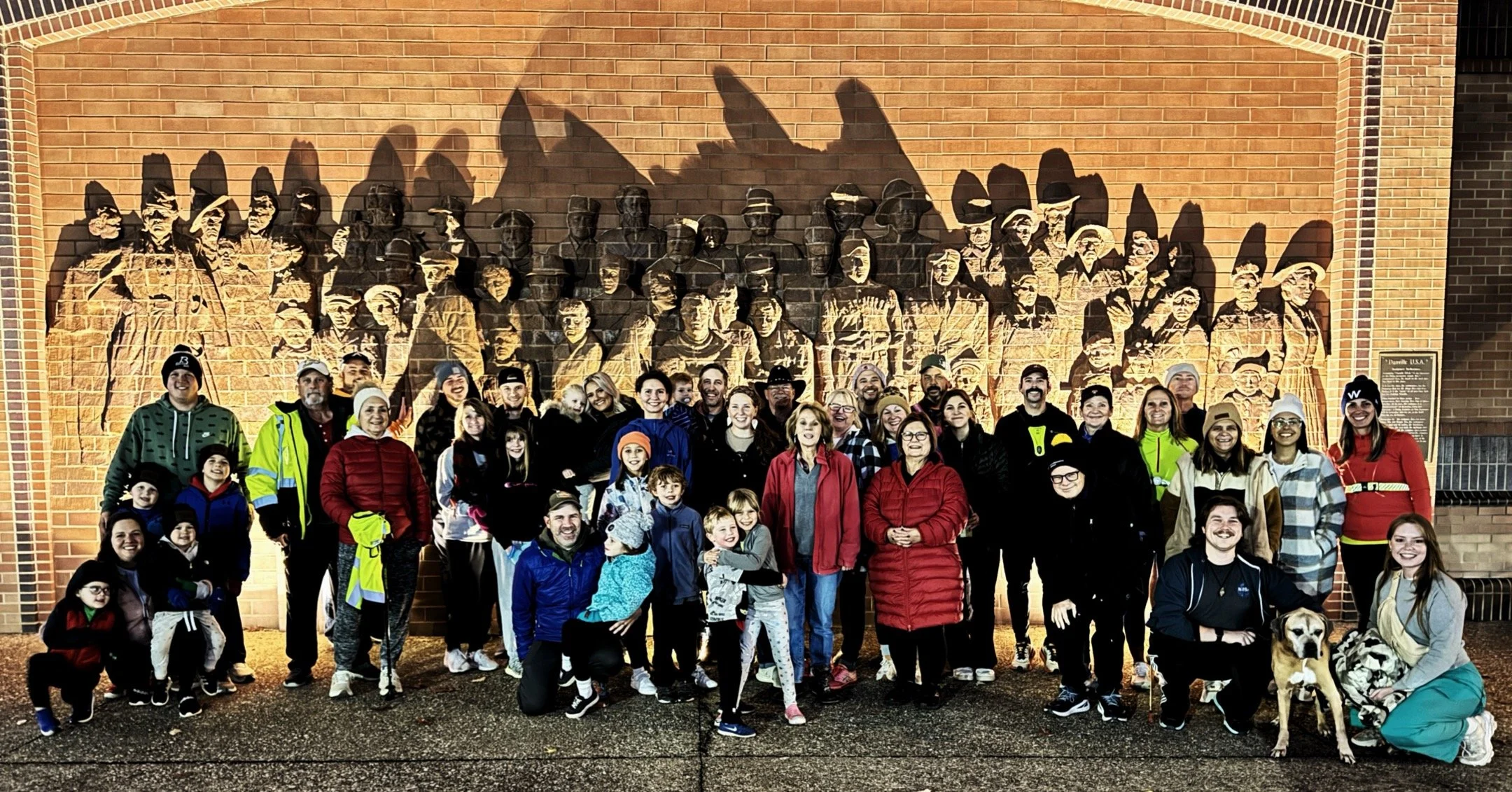 The inaugural walk of the revived Pedestrian Club took place on November 14, 2024, starting at Vermilion River Beer Company (103 N. Vermilion St.). 44 people and one enthusiastic dog named Roscoe walked one mile through downtown Danville, ending at Temple Plaza for a group photo that now marks the official return of the club.